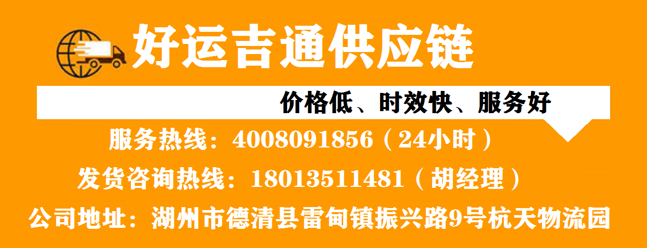 好運吉通湖州物流公司擁有一批高素質(zhì)、專業(yè)化和多年從事物流經(jīng)驗的工作人員,可根據(jù)客戶的具體要求和行業(yè)特點,設(shè)計合適的物流方案及綜合物流服務(wù)。公司秉承“因為專一,所有專業(yè)”的理念,堅持用心做事、專注做事。通過整合物流資源,為廣大客戶提供“安全、高效、準(zhǔn)確、及時、實惠”的服務(wù)。在廣大貨主的支持下好運吉通供應(yīng)鏈得到了快速的發(fā)展,如今已成為湖州品牌物流。好運吉通供應(yīng)鏈主營湖州到各城市物流專線,是一家集湖州整車運輸公司、湖州倉儲配送公司、湖州零擔(dān)物流公司、湖州轎車托運公司、湖州大件運輸公司、湖州搬廠搬家公司、湖州行李托運公司、湖州包裝公司、湖州裝卸公司為一體的一站式物流公司,天天發(fā)車,線線必達(dá)。